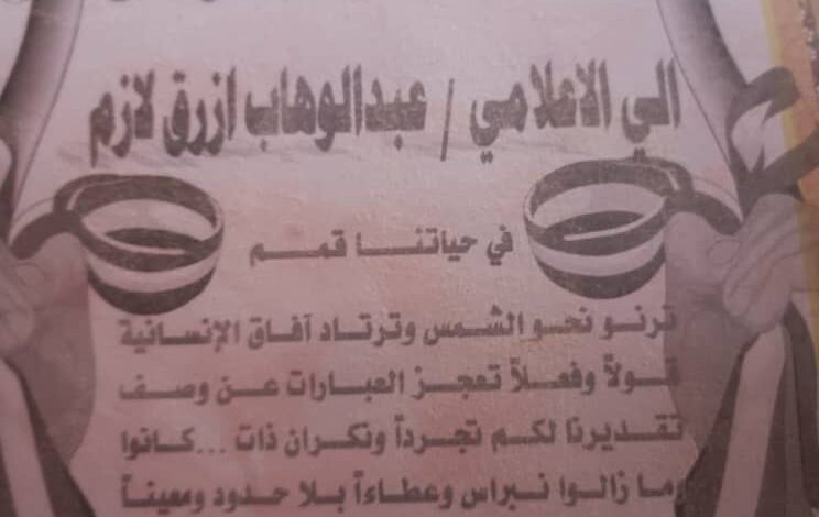 تكريم الصحفي عبد الوهاب أزرق بالدلنج