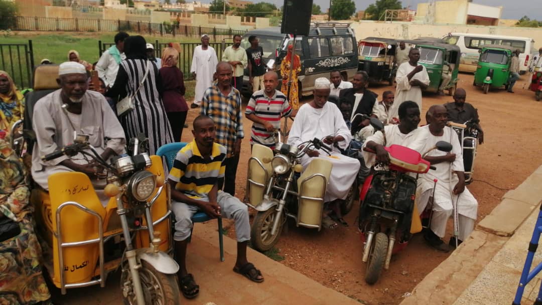 كما ذكر المعاق ادم أحمد عبدالرحمن وهو يقود عربة موتور أن الإعاقة كانت بسبب مرض السكري ووجه شكره للمؤسسة التعاونية متمنياً النصر لقوات الشعب المسلحة و النصر العاجل