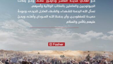 ودعا صلاح الشعب السوداني اينما كان والشعوب المحبه للسلام الي معرقه ان هذه آلأرض هي ارض لكل اهل السودان الا من تدثر بثوب الارتزاق السياسي وبيع الكرامه الوطنيه والانسانيه