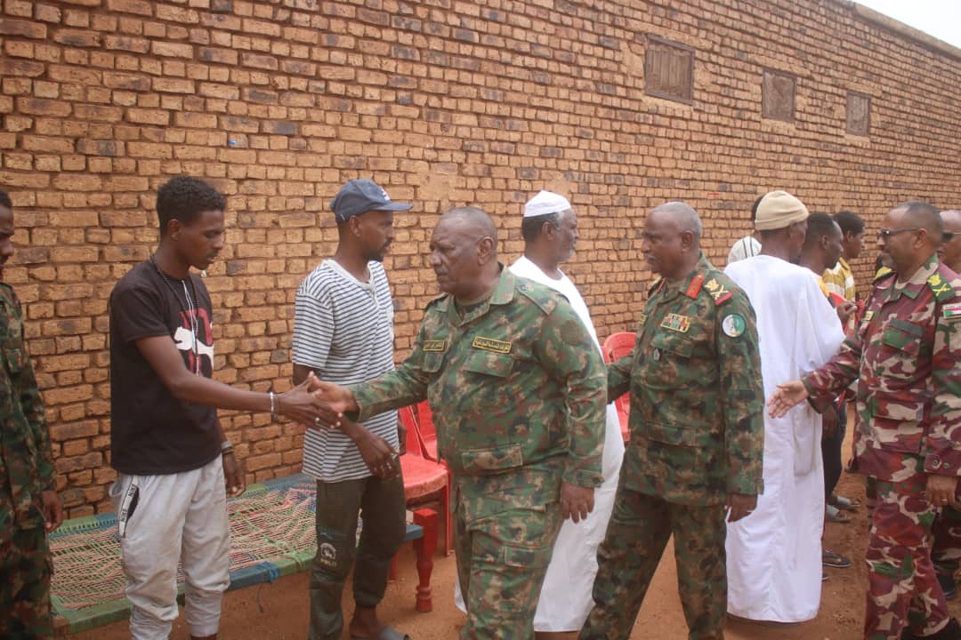 والي الجزيرة وقيادات الجيش و الاجهزة الشرطية والأمنية والمقاومة الشعبية يادؤون واجب العزاء في شهيد معركة الكرامة بحي الدسيس..