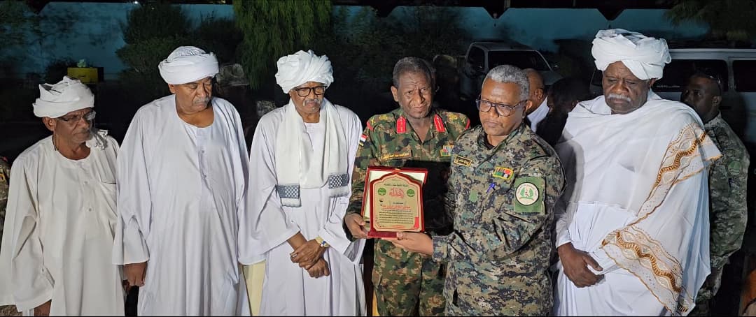 كرم والي القضارف المكلف الفريق الركن محمد أحمد حسن أحمد قائد متحرك النبأ اليقين العقيد الركن عبادي الطاهر الزين تقديرا للإنتصارات الكبيرة التي حققها المتحرك على مليشيا الدعم السريع الإرهابية إبتداءا من الدندر و السوكي و سنجة مرورا بولاية الجزيرة ثم ولاية الخرطوم.