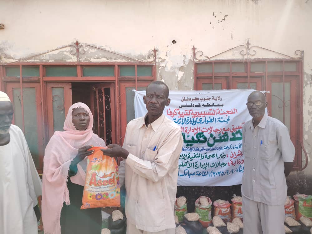 قامت لجنة الطوارئ وإدارة الأزمة بقرية كوفا بكادقلي حاضرة ولاية جنوب كردفان بالتنسيق مع الإدارة الأهلية بالمنطقة بتقديم سلة غذائية لعدد خمسة وثلاثين أسرة متعففة. وقال رئيس لجنة الطوارئ وإدارة الأزمة بقرية كوفا الصاوي يسن عبدالله فى تصريح صحفى إن اللجنة تعمل في مسارين إنسانيين يتمثل في تنفيذ تكايا مباشرة وتقديم خدمة للأسر المتعففة ملامسة لحاجة المتأثرين بالحصار . وأشار إلى أن اللجنة ماضية في إستهداف كل بقية الشرائح بمدينة كادقلي . مناشداً أبناء كوفا داخل السودان وخارجه إلى المساهمة بالدعم المادي والعيني لمساعدة أكبر قطاع من الأهل .