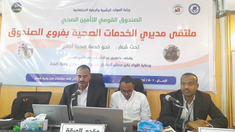 بدوره أكد ممثل المدير العام للصندوق القومي للتأمين الصحي الدكتور الفارابي ابراهيم مشاركة مدراء فروع التأمين الصحي بالولايات اسفيريا في الملتقى.