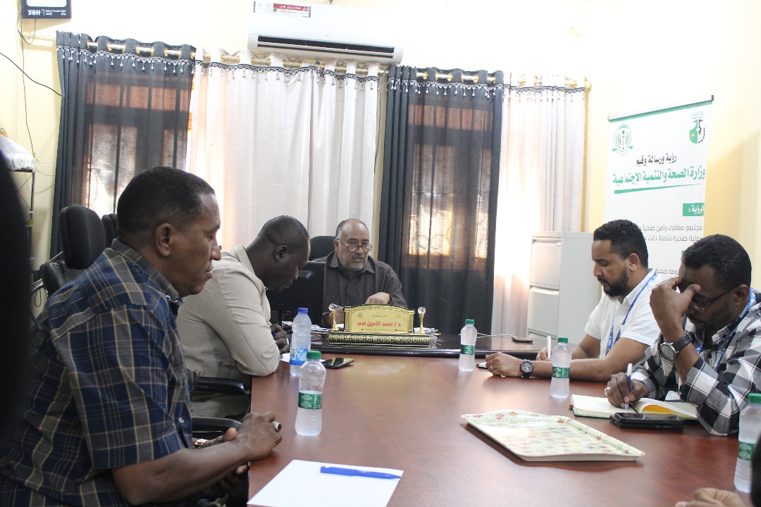 عقد السيد مدير عام وزارة الصحة والتنمية الاجتماعية بولاية القضارف، الدكتور أحمد الأمين آدم، اجتماعاً بفريق برنامج الأمم المتحدة الإنمائي (UNDP)، وذلك لمناقشة الوضع الصحي الراهن وبرامج الصحة العامة في الولاية.
