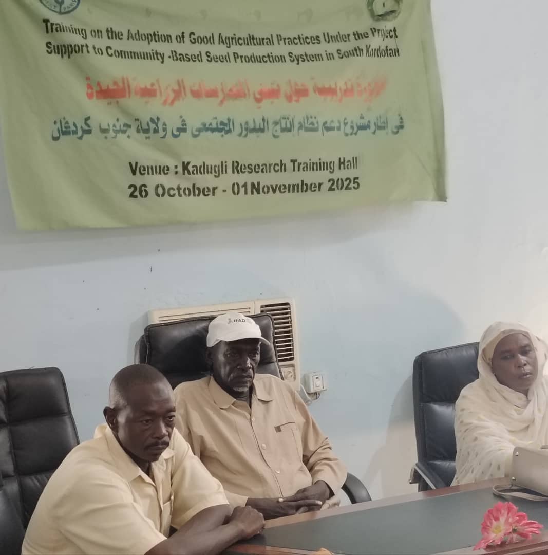إختتمت منظمة الزراعة والأغذية العالمية ( الفاو ) ضمن مشروعها الفني مع محطة بحوث كادقلي لإنتاج التقاوي المجتمعية لعدد ست مجتمعات بكادقلي الكبرى والريف الشرقي إختتمت دورة تدريب المدربين لعدد من المهندسين الزراعيين فى تخصصات الإرشاد الزراعي والهندسة الزراعية والتخطيط والتقاوي وفحص التربة والوقاية والبحوث حول تبني الممارسات الزراعية الجيدة والتى إمتدت لإسبوع كامل قدمها الخبير الزراعي أحمد عبدالله كلبا .