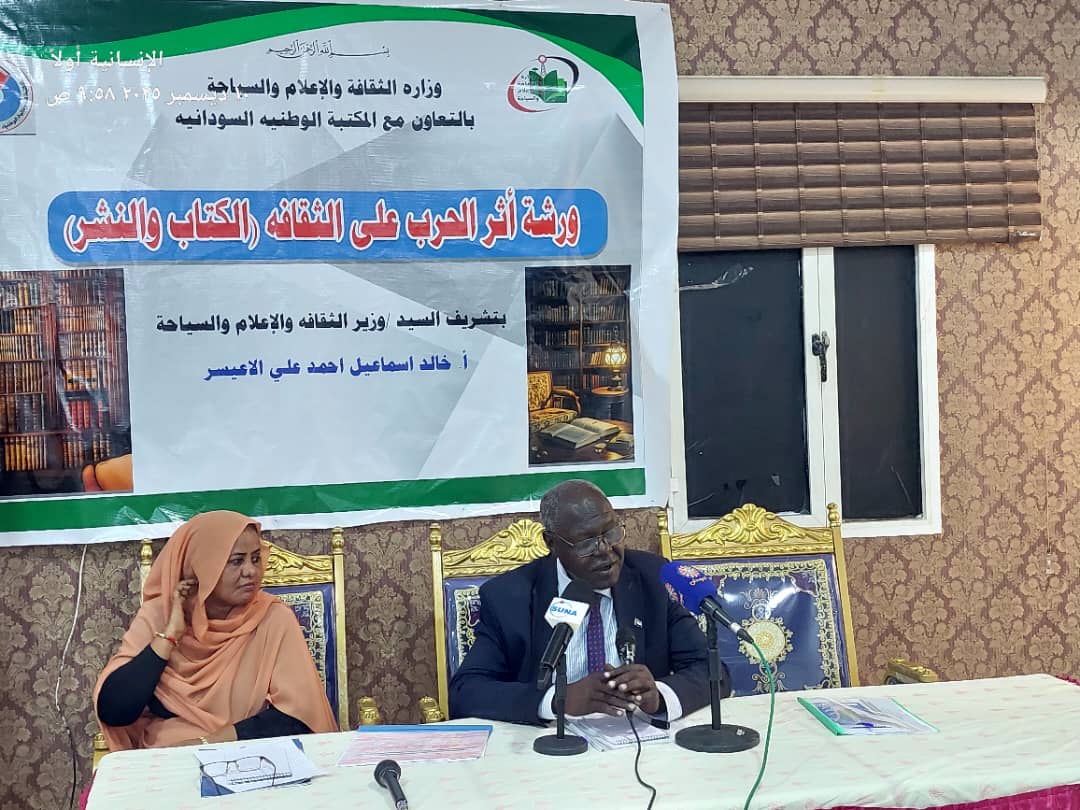 عقدت وزارة الثقافة والإعلام والسياحة بالتعاون مع المكتبة الوطنية السودانية اليوم بنادي الشرطة بورتسودان ورشة أثر الحرب على الثقافة (الكتاب والنشر) بحضور وكيلي الثقافة والاعلام والسياحة الدكتور جراهام عبدالقادر والأستاذة سمية الهادي وعدد من المفكرين والمثقفين والمبدعين والكتاب.