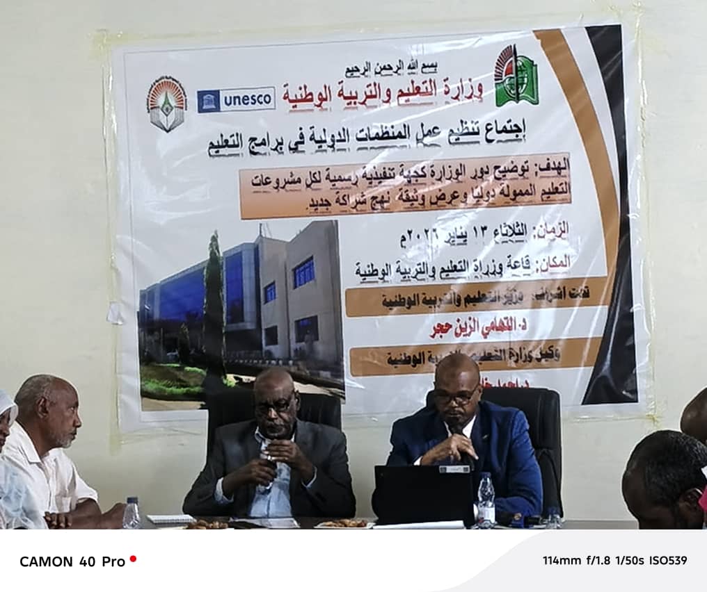 واوضح التهامي ان الهدف من هذا الاجتماع توحيد قنوات الاتصال مع المنظمات التي تعمل في حقل التعليم عبر وزاره التعليم والتربية الوطنية ومنها إلى الادارة المختصة، ومنها الى الولايات حتى تصل الخدمة المقدمة من جانب هذه المنظمات إلى المدارس والمجتمعات المحلية.
