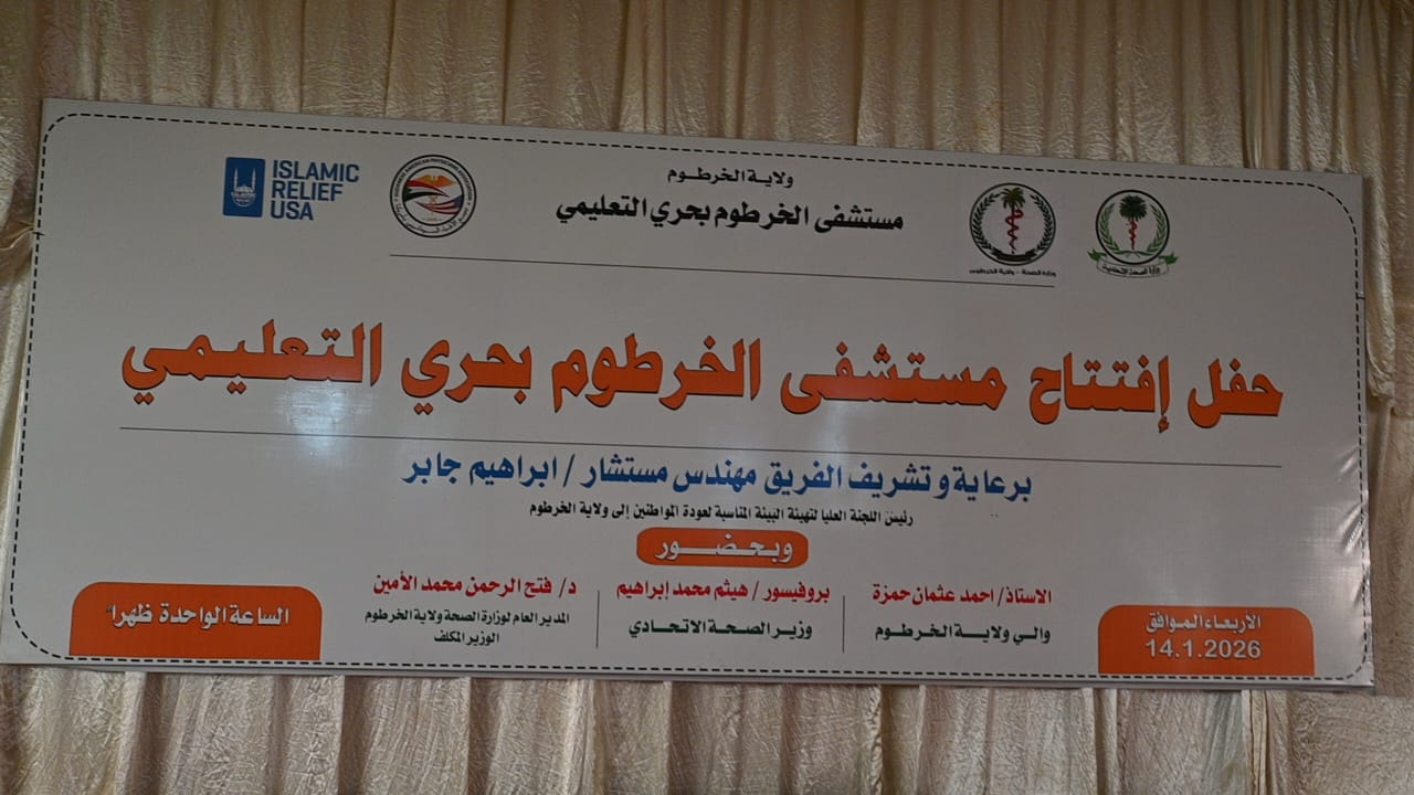 تعلن منظمة تجمع الأطباء السودانيين بالولايات المتحدة (سابا)، وبشراكة فاعلة ودعم كريم من Islamic Relief USA، عن افتتاح مستشفى بحري التعليمي عقب اكتمال أعمال التأهيل والصيانة وفق معايير عالمية، وذلك بحضور قيادات الدولة وشركاء العمل الإنساني.