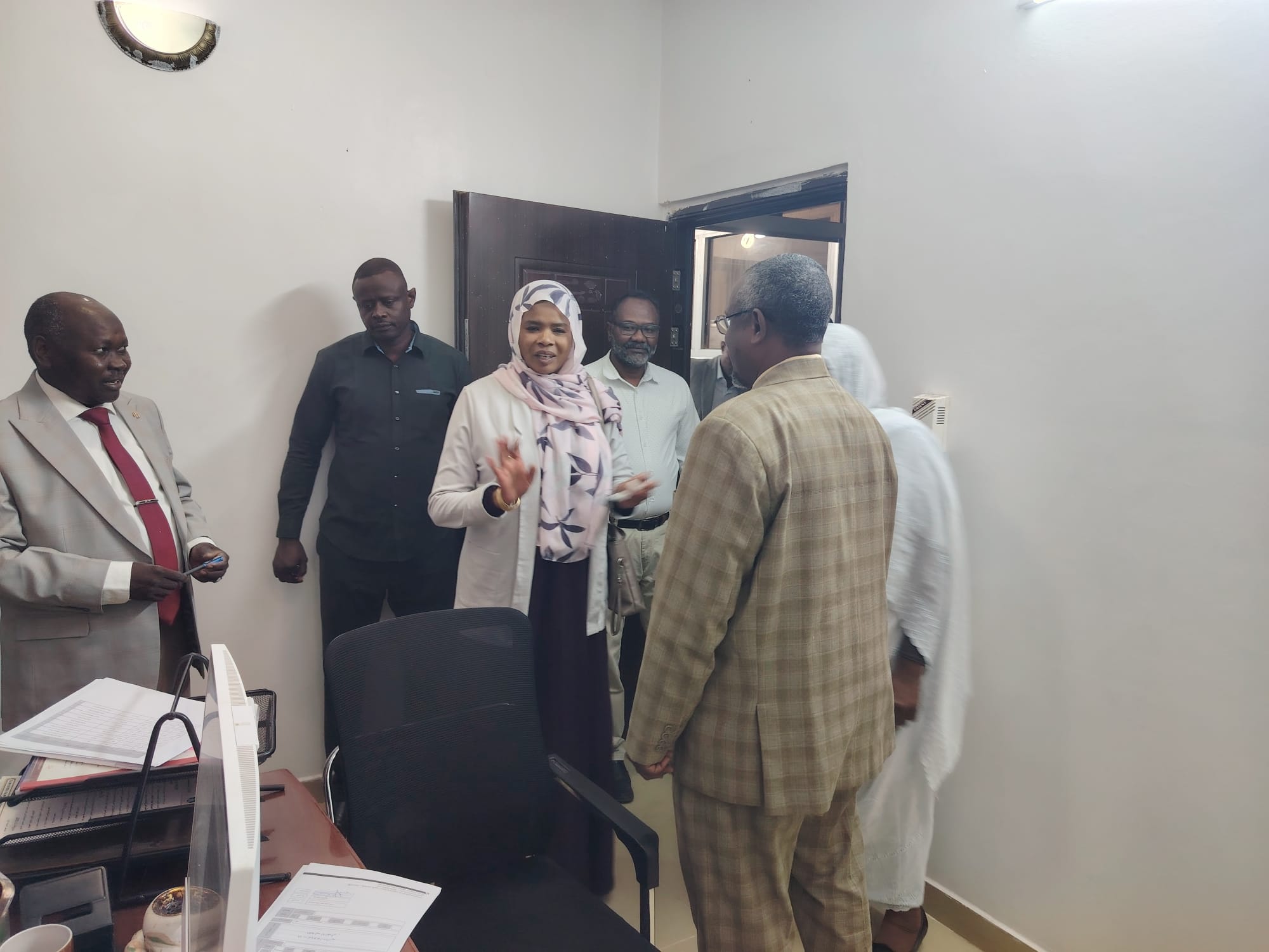 وكان في استقبالها المدير العام المكلّف للهيئة، جيولوجي مستشار عمر عثمان، الذي اصطحبها في جولة شملت المبنى الإداري، حيث طافت الوكيلة على المكاتب والإدارات المختلفة، والتقت بالعاملين في مواقع عملهم للاطلاع على سير الأداء اليومي. 🏢📊