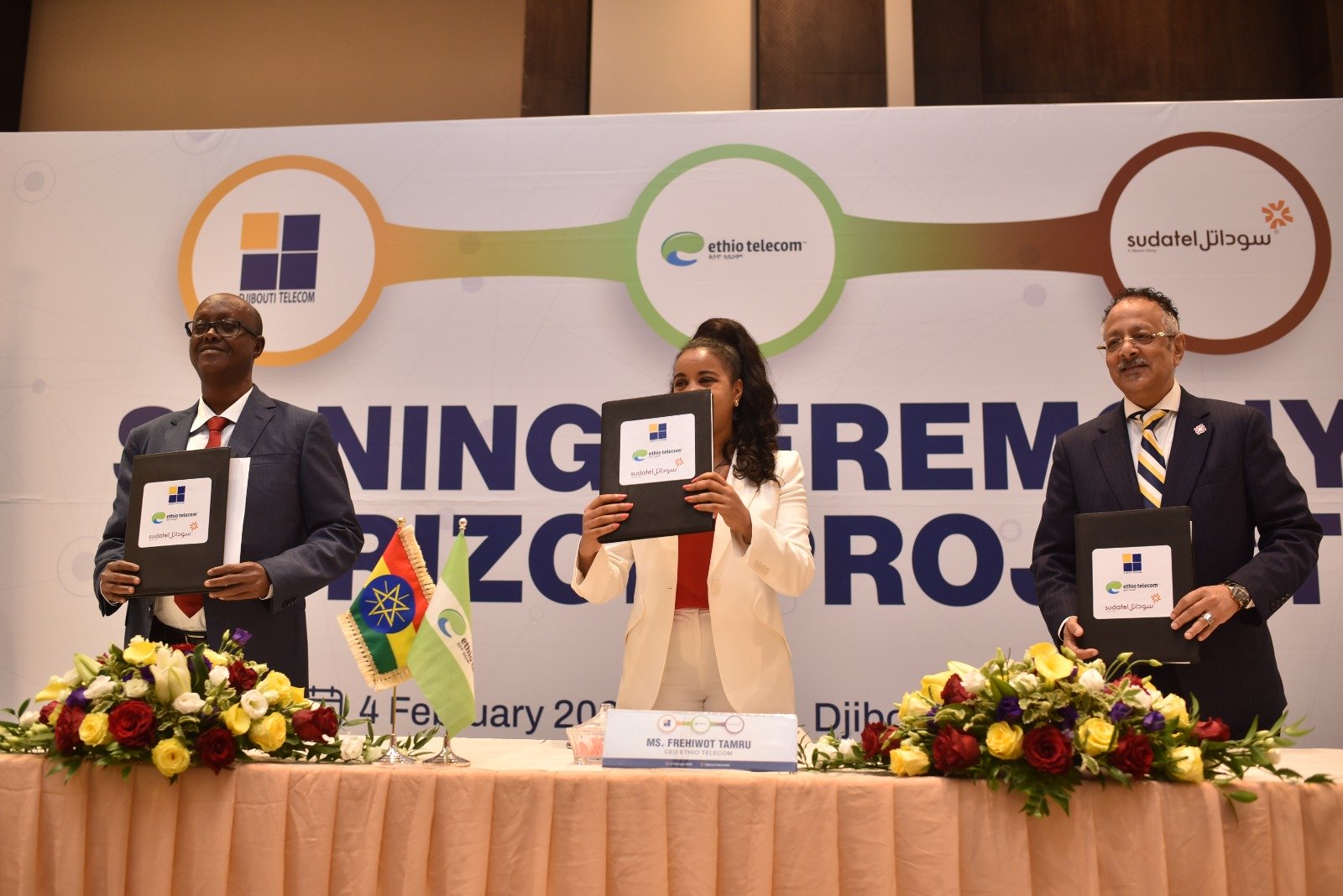 شهد التوقيع السيد مجدي طه الرئيس التنفيذي لمجموعة (سوداتل) للاتصالات، إلى جانب السيدة فريهيووت تامرو المديرة العامة للاتصالات الأثيوبية ، والسيد محمد أسويه بوح المدير العام للاتصالات الجيبوتية..وقد ضم وفد (سوداتل) قيادات رفيعة من الإدارة العليا بالمجموعة.