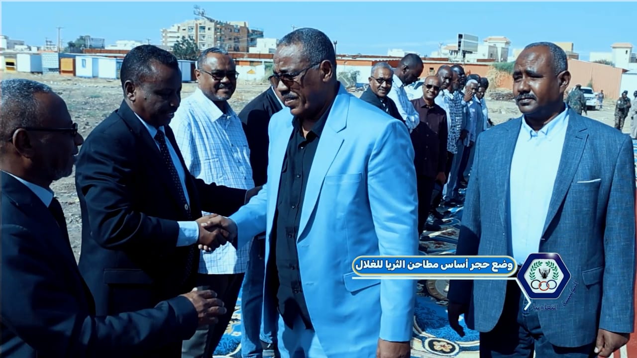 المدير العام للمؤسسة التعاونية الوطنية سعادة اللواء محاسب عادل العبيد عبدالرحيم يضع حجر الأساس لمطاحن الثريا للغلال بحضور ممثلو بنك أم درمان الوطني ومدراء الإدارات والشركات بالمؤسسة التعاونية الوطنية