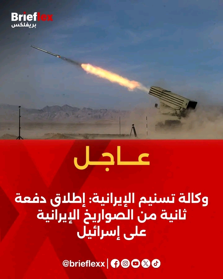 وكالة تسنيم الإيرانية: إطلاق دفعة ثانية من الصواريخ الإيرانية على #إسرائيل #بريفلكس_عاجل