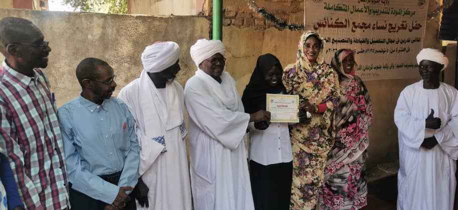من ناحيته أكد ممثل ديوان الزكاة بالولاية موسى عبدالعزيز إستهداف نساء الكنيسة إرساءاً لدعائم قيم التسامح الديني . كما أكد تعاون الديوان مع مركز المودة فى المرحلة لخدمة النساء واليافعات واليافعين المتأثرين بالحرب . وفي السياق ثمنت ممثل الخريجات بمجمع الكنائس بكادقلي سفن هارون دعم حكومة الولاية للدورة وإنجاح برامجها . وأشادت بروح المدربات بمركز المودة وتسهيلهن لعملية التدريب . وأكدت الحاجة لمزيد من الدورات التدريبية . معربة عن شكرها لمجمع الكنائس بكادقلي على سعيه الدؤوب فى البحث عن فرص لتدريب وتأهيل نساء المجمع فى عدد من المجالات .