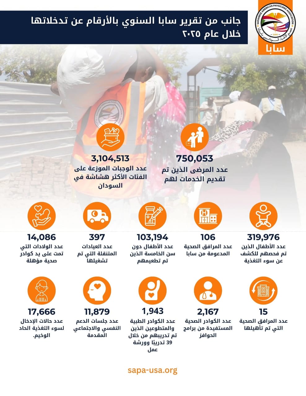 سابا تقدم أكثر من 3 ملايين وجبة وتدعم 750 ألف مريض في السودان خلال 2025م