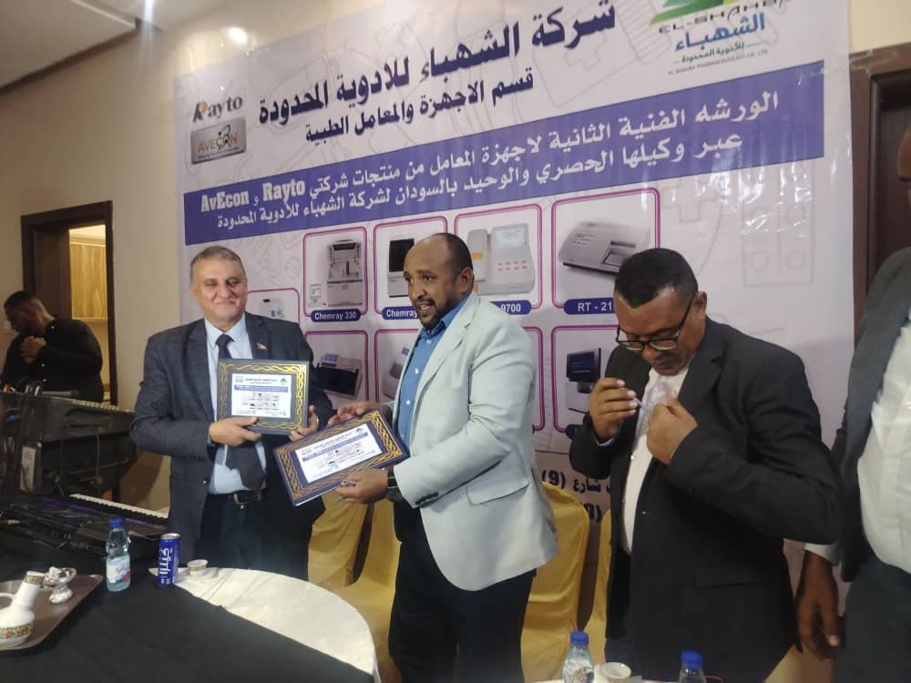 ✍🏻*بتشريف وزير الصحة بولاية الخرطوم، اختتمت شركة الشهباء للأدوية المحدودة فعاليات الورشة الفنية الثانية لأجهزة المعامل من شركتي Rayto وAvEcon، وذلك وسط حضور نوعي ومشاركة واسعة من الكوادر الطبية والفنية والمتخصصين في مجال المعامل.*